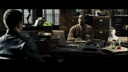 Luda:  I’m Lt. Bravura. We’re pretty sure a Homicide cop was stupid enough to leave evidence at two murders, but we aren’t going to suspend you or detain you. We’ll just stare angrily at you.
