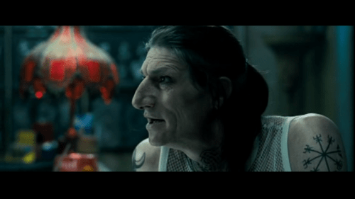 Tattoo Guy:  Blah Blah Blah Blah Norse Mythology Blah Blah Valkyries Blah Blah Why the fuck am I in this movie Blah Blah Blah.