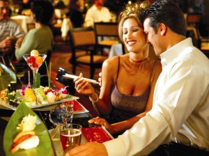 Woman: What a nice dinner. I could use a little more wine, though.